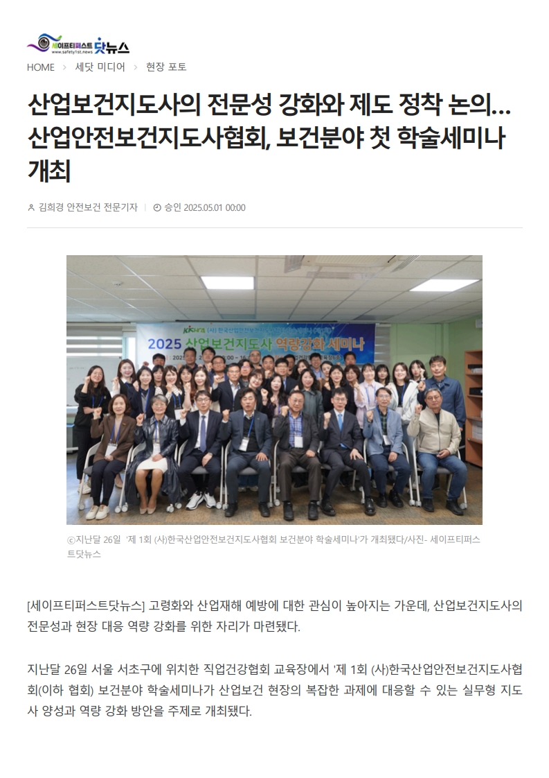 산업안전보건지도사협회 보건분야 첫 학술세...