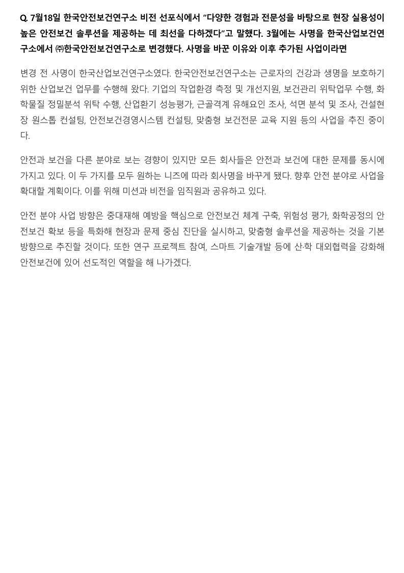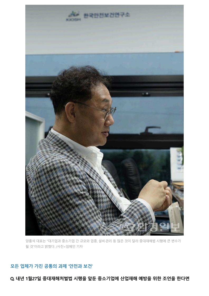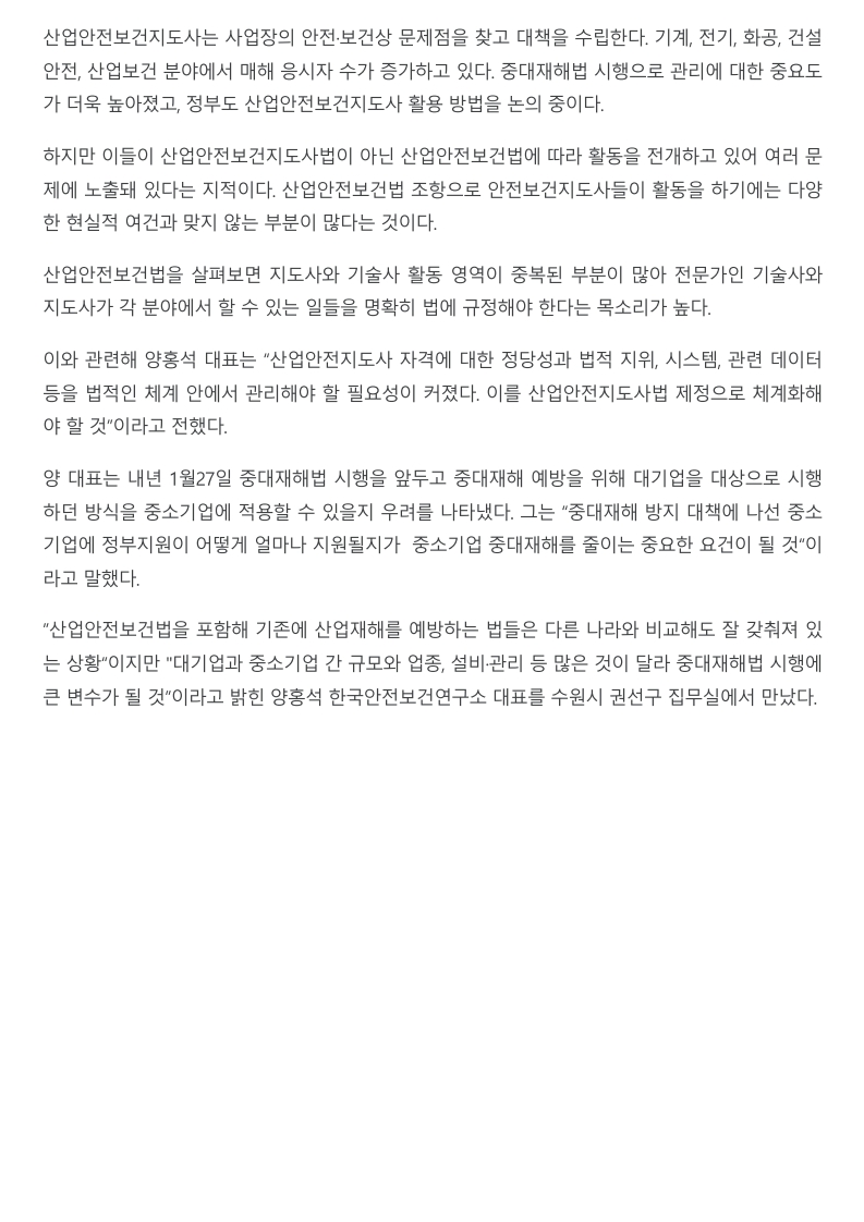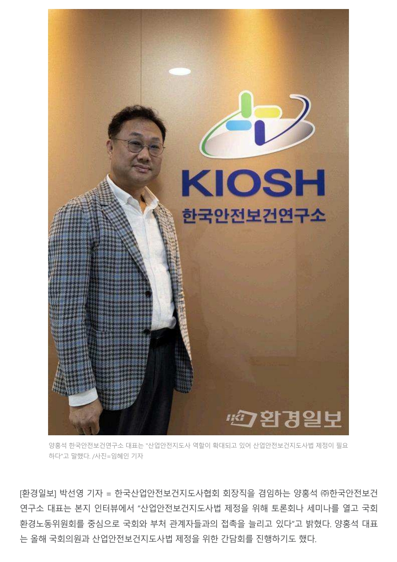 [인터뷰] 양홍석 (주)한국안전보건연구소 대표'산업안전지도사 역할, 법 제정으로 체계화해야'