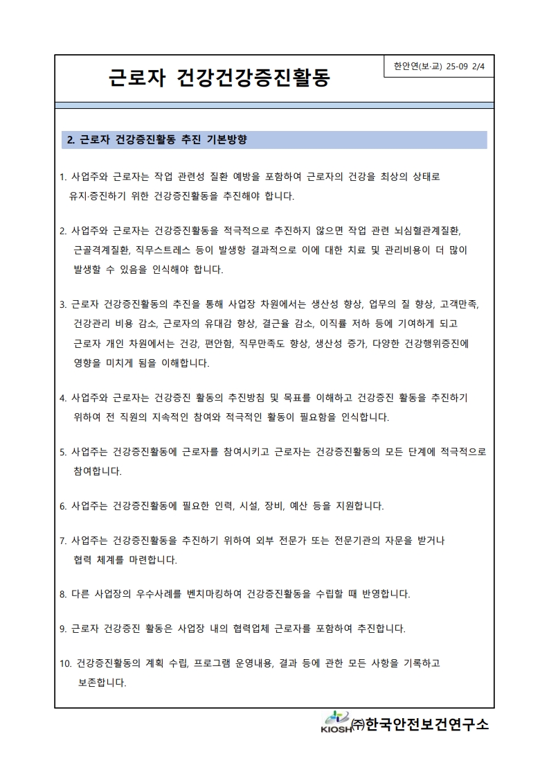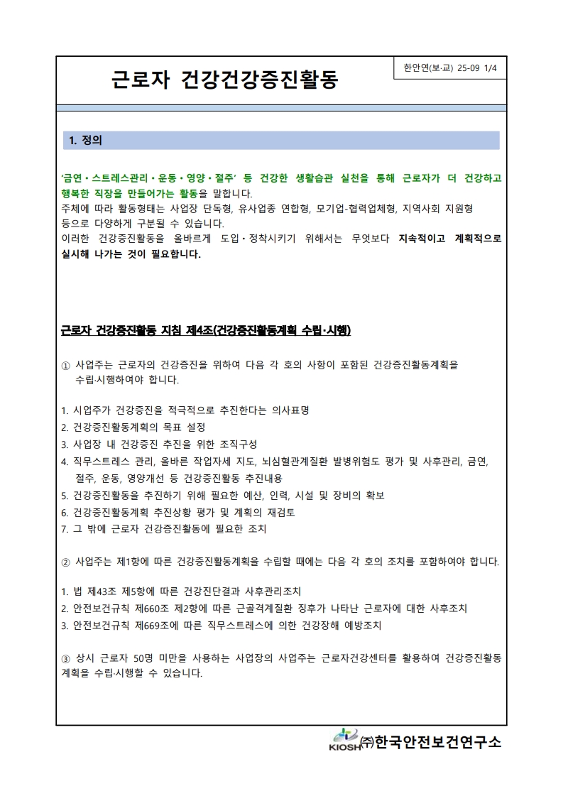 근로자의 생명과 건강보호에 정성을 다하겠습니다.