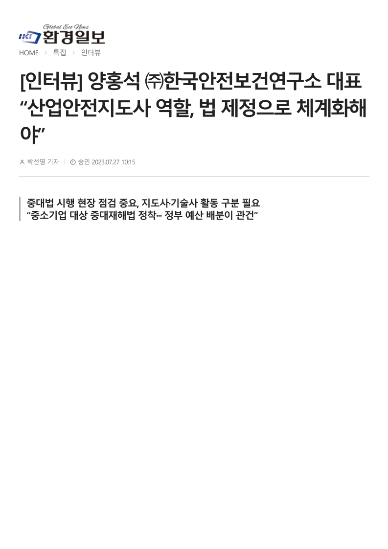 [인터뷰] 양홍석 (주)한국안전보건연구소 대표'...