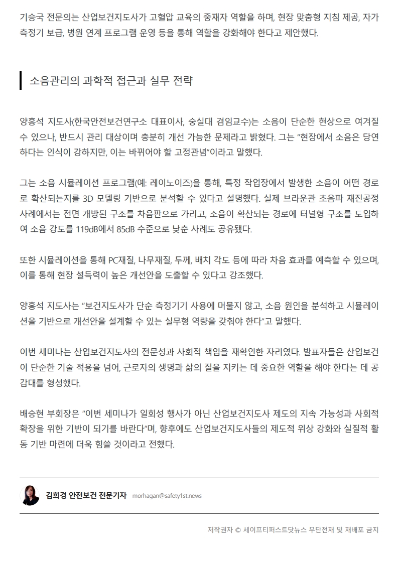 산업안전보건지도사협회 보건분야 첫 학술세미나